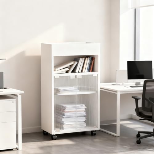PreuepltrMa Home Office Bookcase,small bookshelf for small spaces,4-Tier Wooden Bookcases,Space-Saving Storage Organizer, Behind The Door Storage Organizer for Toys and Books(White fluted glass door)