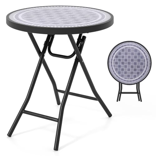Multigot Folding Side Table, 46cm Round Outdoor Tempered Glass Top Coffee End Table, X-Shaped Metal Frame Patio Tea Desk for Backyard Poolside Balcony (Grey)