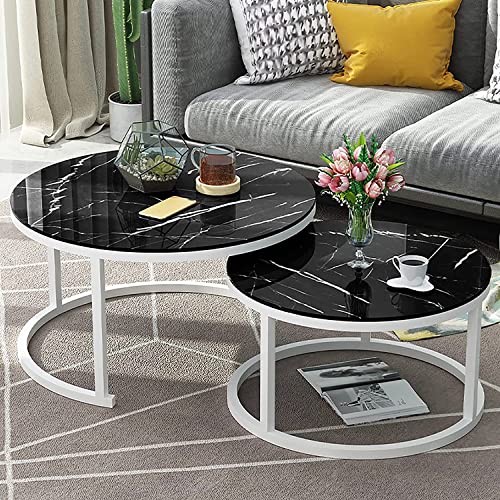 Modern Living Room coffe table Living Room Nesting Coffee Table Set Of 2, Stacking Coffee Side Tables, Round Tempered Glass End Table, Minimalist Metal Frame Easy Assemb