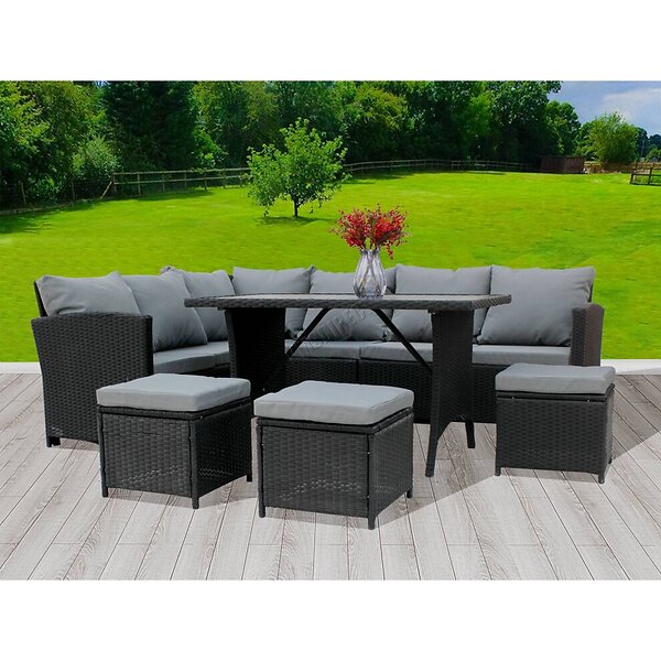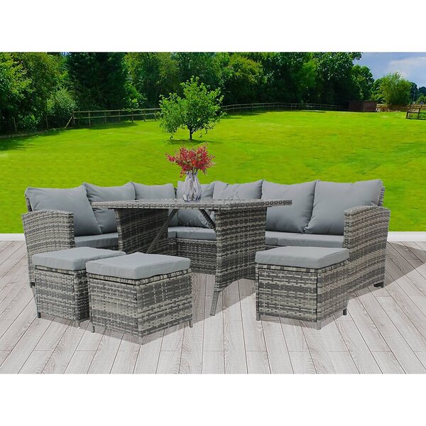 Birchtree Rattan Garden Furniture Set Corner Sofa Glass Table Patio 5 Pieces Gre