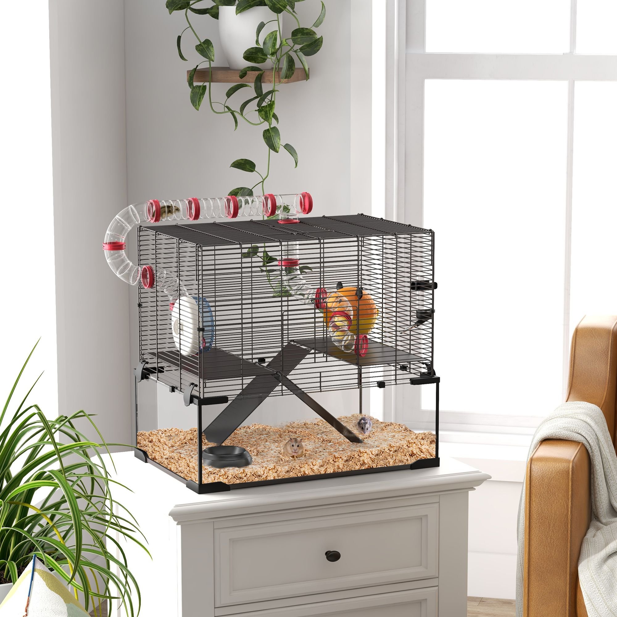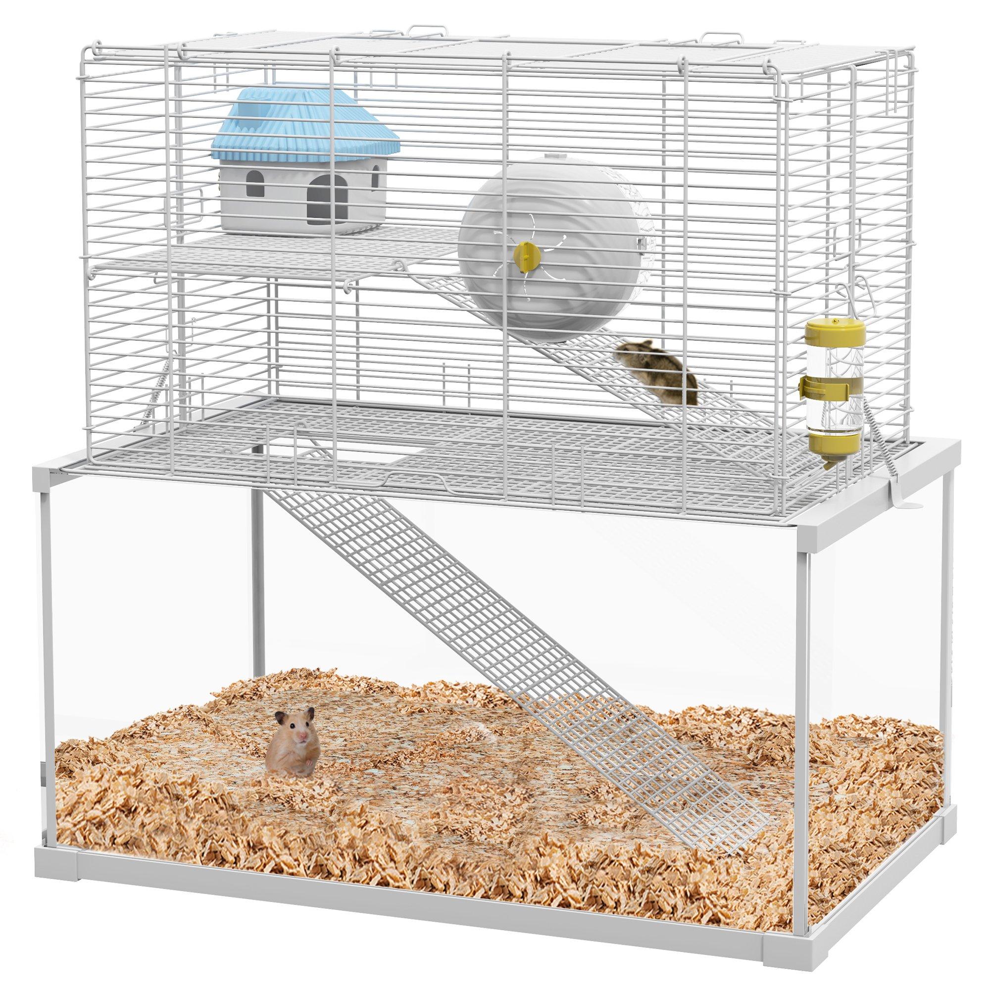 Pawhut 3 Tiers Hamster Cage, Gerbil Cage With Deep Glass Bottom, Non-slip Ramps, Platforms, Hut Exercise Wheels Water Bottle For Syrian Dwarf Hamster