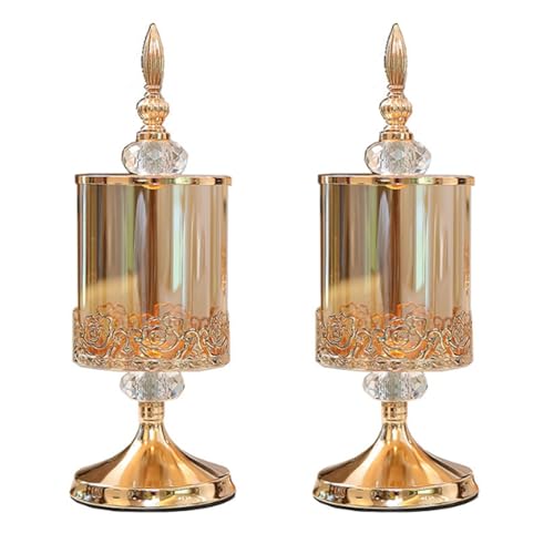Puthernm 2X European Crystal Glass Storage Jar with Lid Rose Candy Jar Gold-Plated Storage Decorative Ornaments S