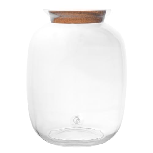 Glass Terrarium Container with Cork Lid, 24 cm High x 26 cm Wide, Hand Blown Clear Glass, Terrarium Jar (with Standard Lid, Glass Only)