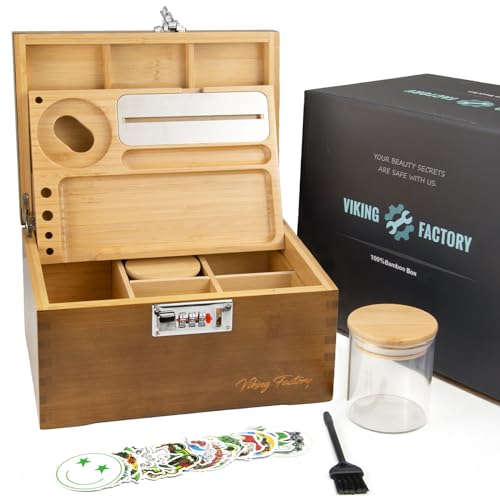 Viking Factory Large Lockable Storage Box with Combination Lock, Secure Organizer for Jewelry, Medicine & Tools, Removable Tray, Glass Jars & Storage Accessories