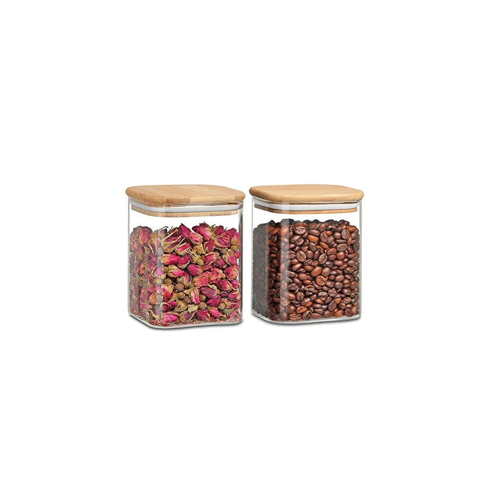 YUEYEE Glass Jars with Lids,Glass Storage Jars with Airtight Bamboo Lids for Preserving Beans Nut Sugar Tea Coffee,Large Capacity Transparent Glass Storage Containers 2 Pack 1600ml Cereal Container