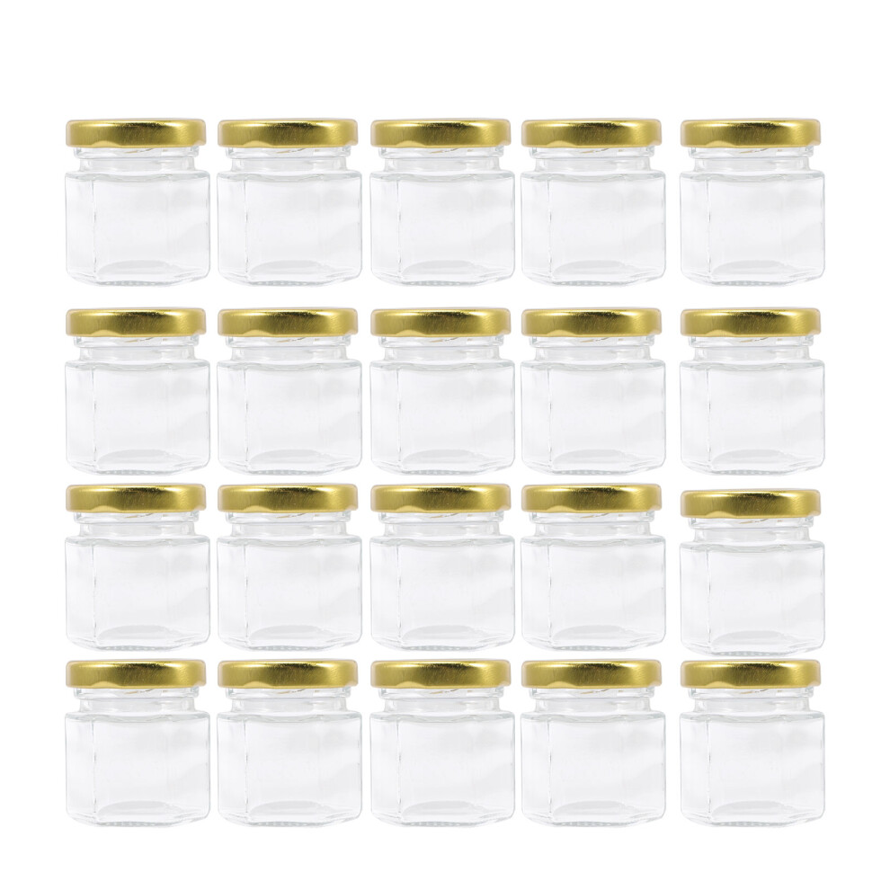 30Pcs 45ML Hexagonal Small Glass Jars, Small Jar for Storage Mason Jars with Airtight Metal Lid Gold Kitchen Storage Jars for Preservatives, Pickle, Jam Crafts, Honey Spices small jam jars with lids