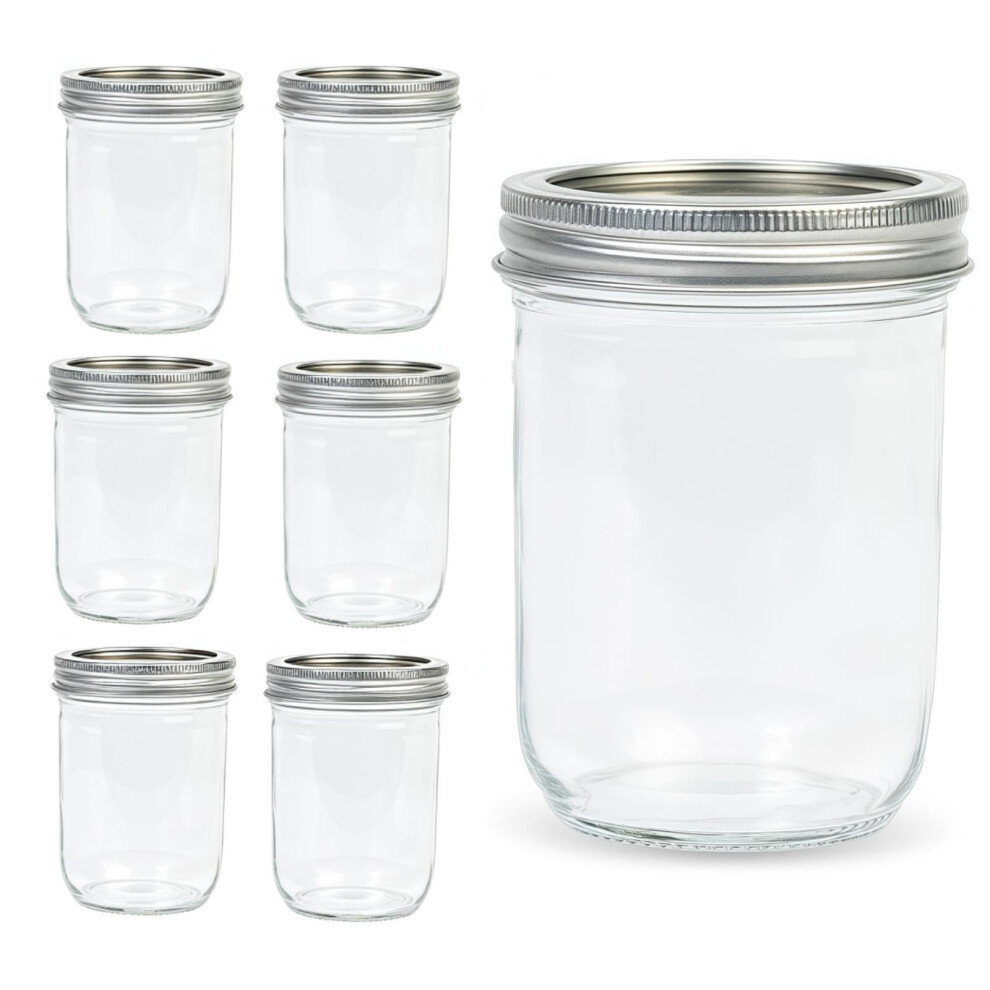 16 OZ Wide Mouth Mason Jar Set Clear Glass Jars for Preserving and Storage
