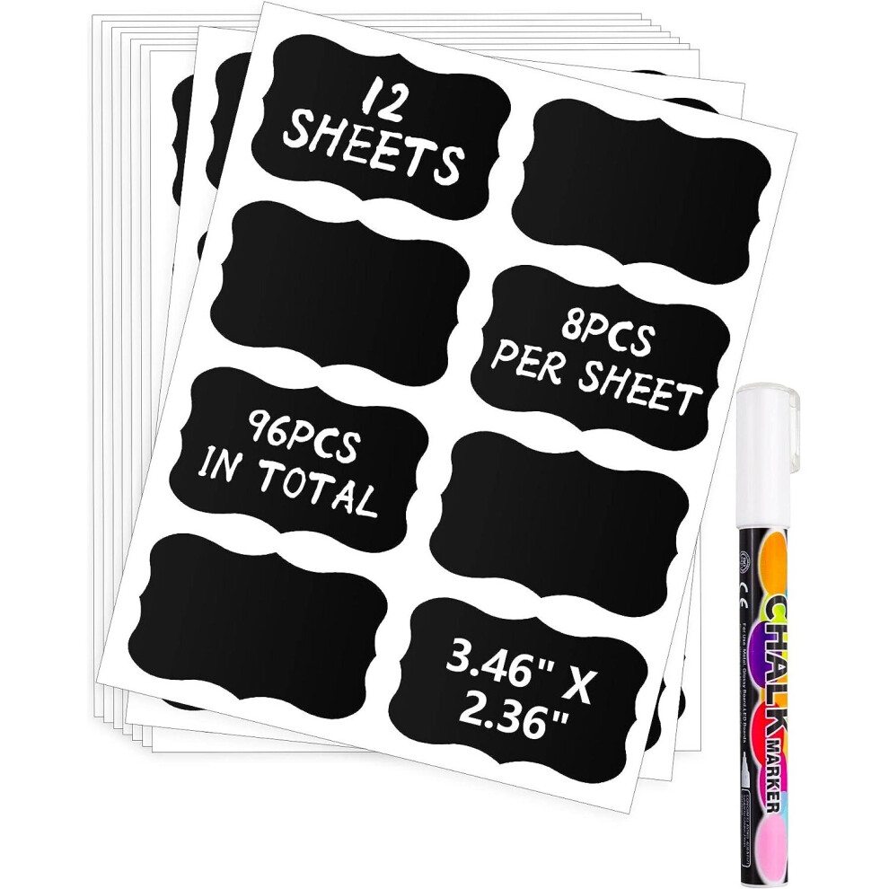 96 PCS Large Size Chalkboard Labels Stickers with Chalk Marker, Removable & Reusable Waterproof Labels for Jars Glass Bottle, and Storage Bins, 8 Labe