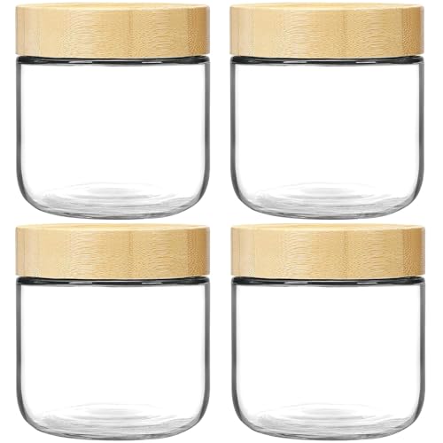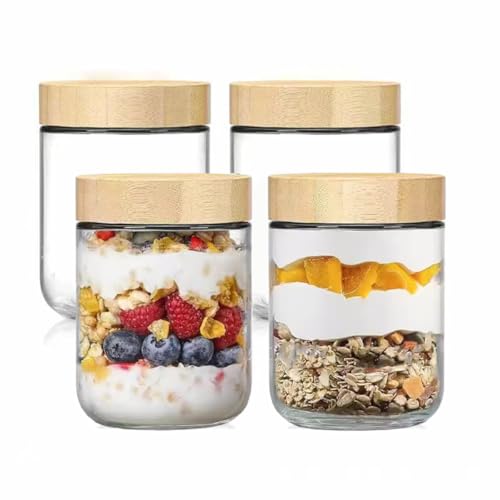 Hylruu 4-pack 16 oz Overnight Oats Containers with Bamboo Lids, Glass jars with Airtight Lids, Wide mouth Mason Salad jars, Glass Food Storage Containers for Snacks Yogurt Spice Sugar pots