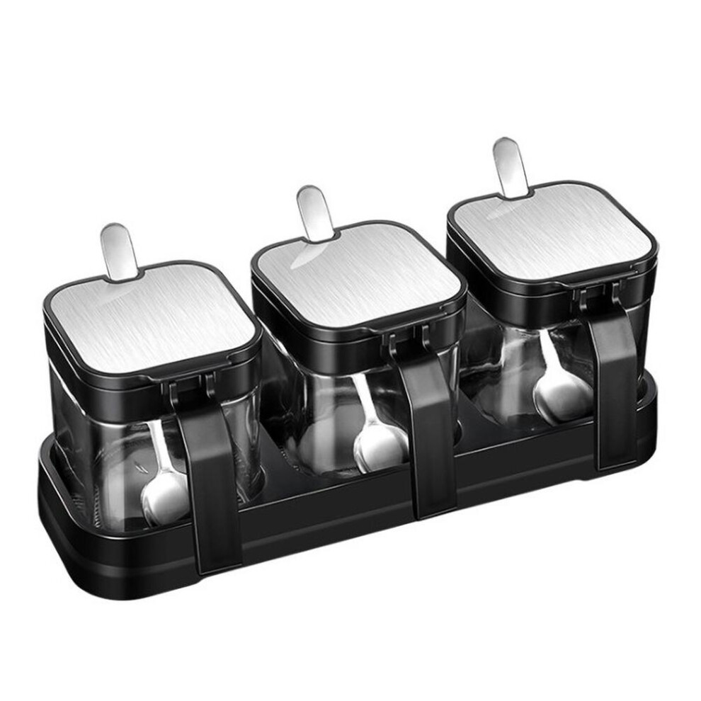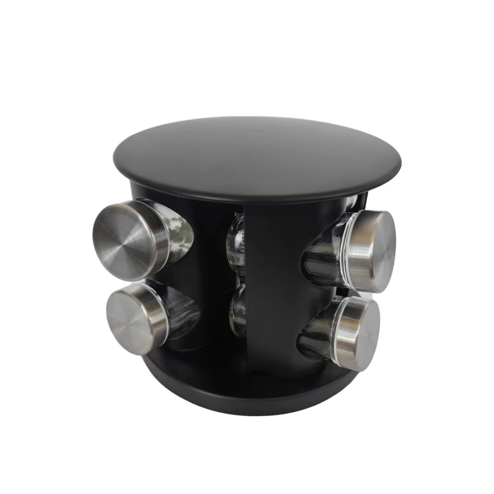 Adjustable Stainless Steel Spice Rack with Glass Jars for Kitchen Countertop Storage Black