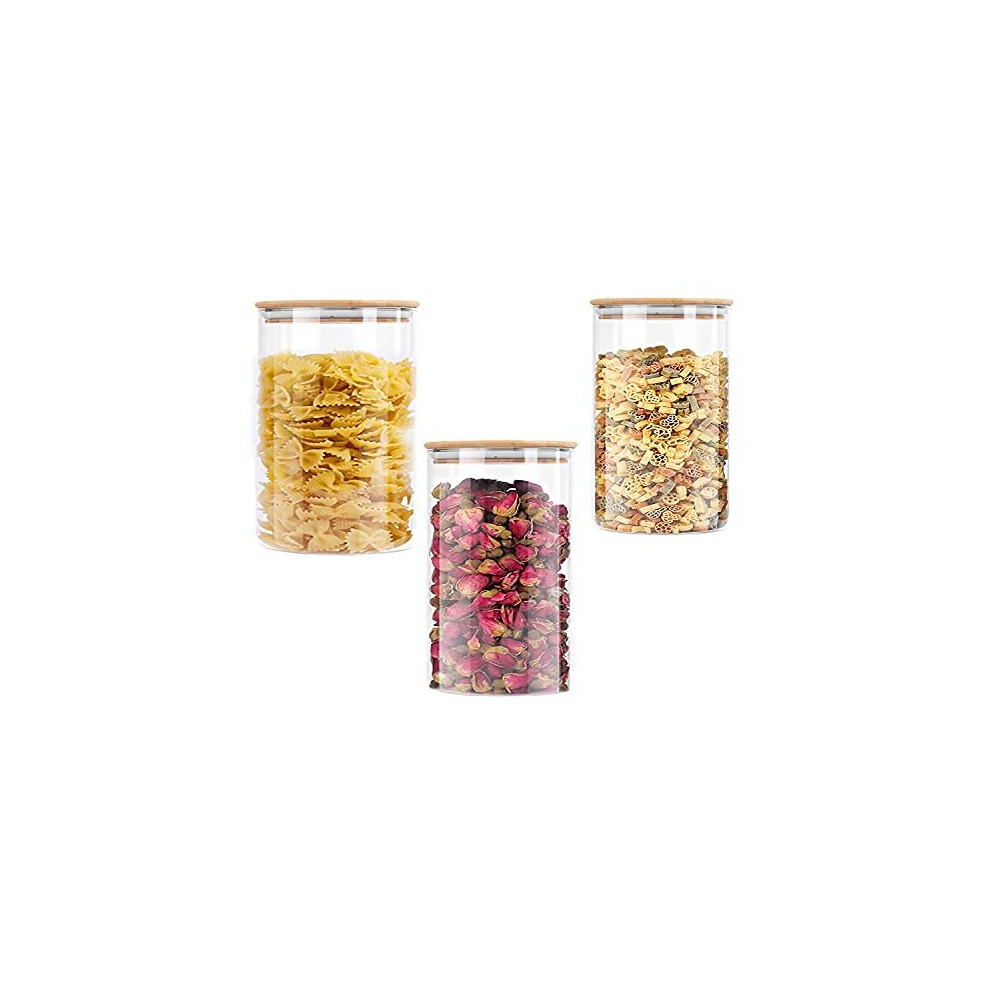 Danmu Art 1700ml 3pcs Glass Spaghetti Pasta Storage Container with Wooden Lids - Glass Jars Canisters - Food Storage Jars for Cereal Nuts 1700ml