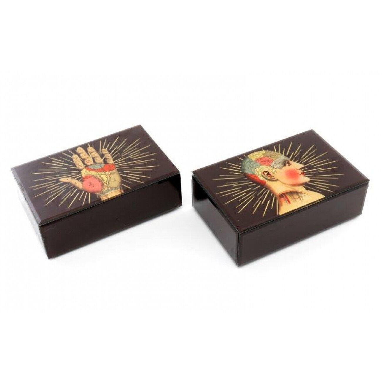 Glass Jewellery Box Palmistry Hand Phrenology Head Dark Brown Assorted Design