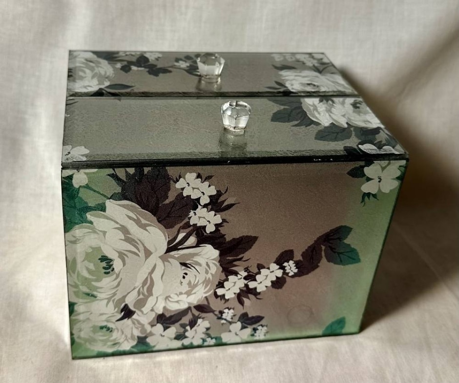 Excellent Mirror Glass Flower Jewellery Storage Box Very Good Condition