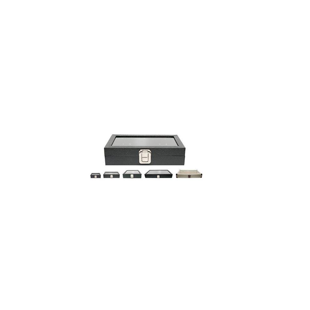 Novel Box Jewelry Display Case Black Leatherette 8.25x7.25x2 Half Size Glass Jewelry Box with Lid | Display Cases for Collectibles | Rock Collection B