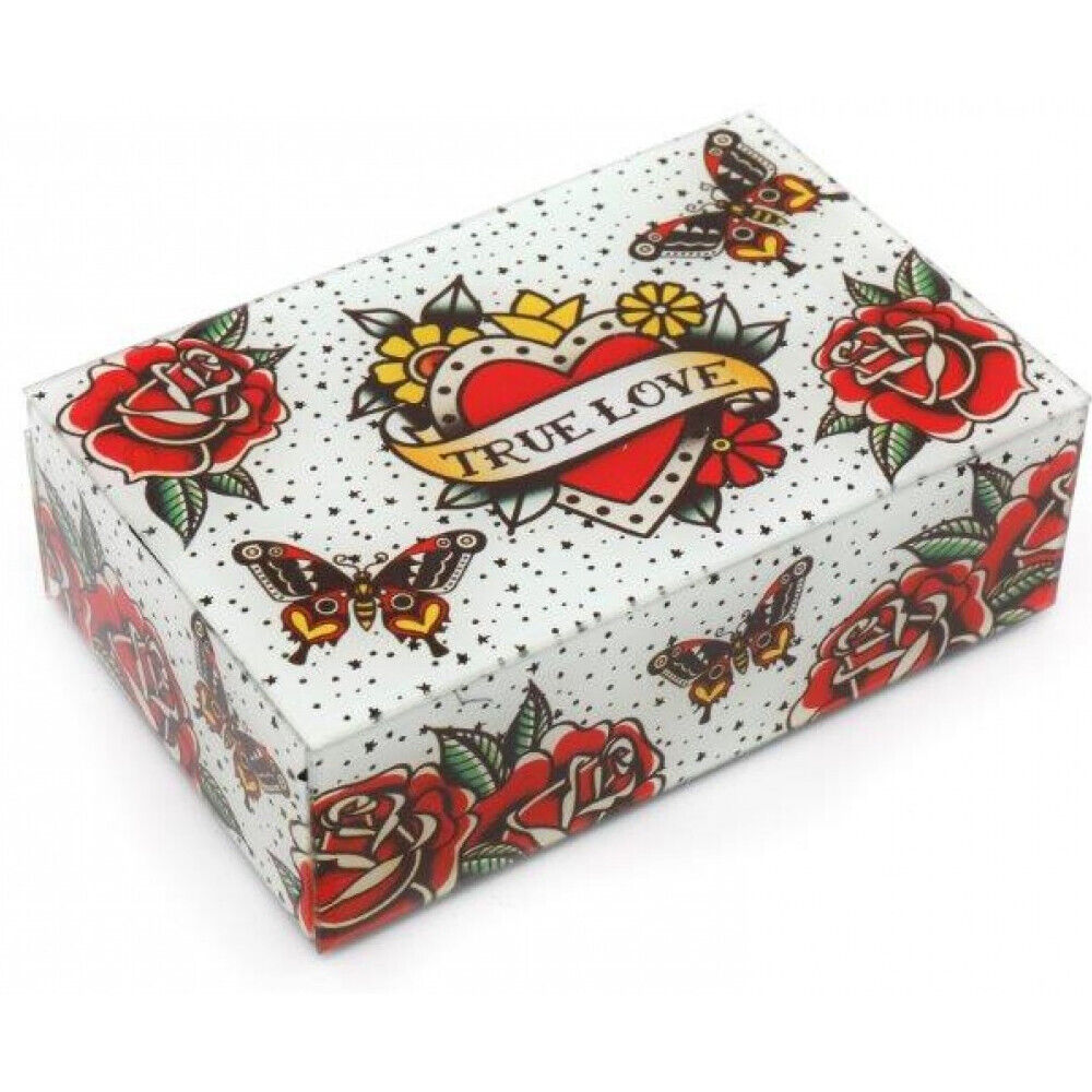 Glass Jewellery Box Trinket True Love White Heart Tattoo Design Velvet Lined