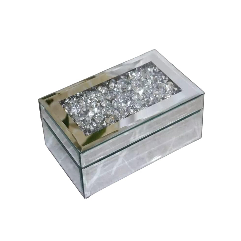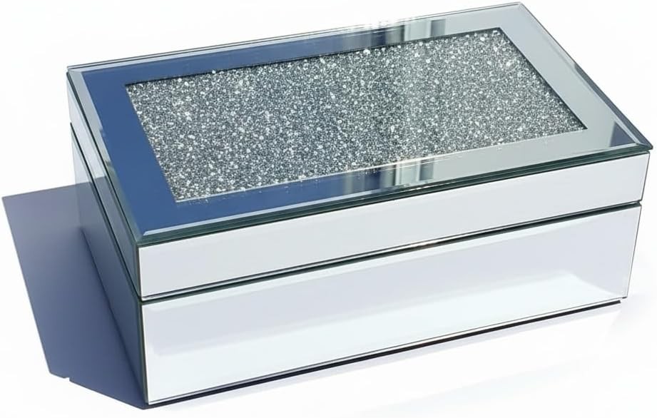 Eaglewiz Silver Crush Jewel Diamante Mirrored Glass Crystal Jewellery Organiser box Storage Crushed Diamond Chest Box Jewelry Women Trinket Drawers