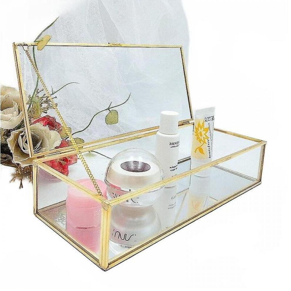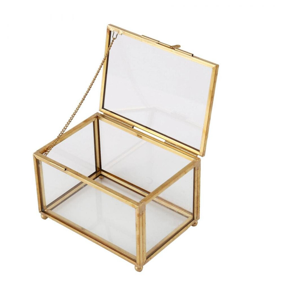 Magideal Golden Vintage Glass Jewelry Box Display Case Organizer for Trinkets, N
