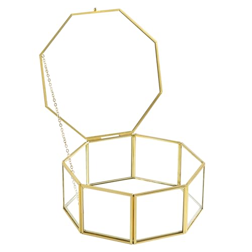 Sanllusit Glass Vintage Jewelry Box, Octagon Gold Display Organizer, Vanity Lidded Home Decor Accent for Storage Trinket Rings Bracelet - Big