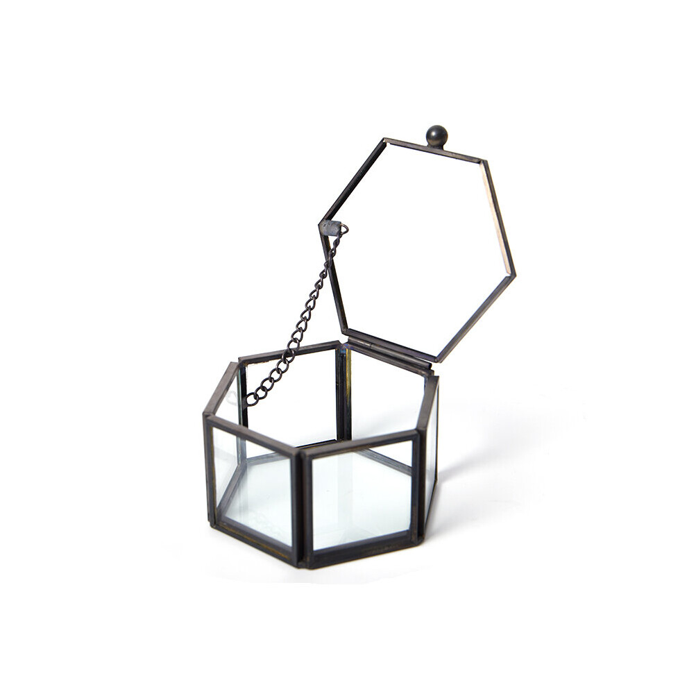 X7JB Clear Glass Rectangular Metal Jewelry Box Decorative Slanted Top Lid Shadow Box Vintage Jewelry Chest Keepsake Storage Case