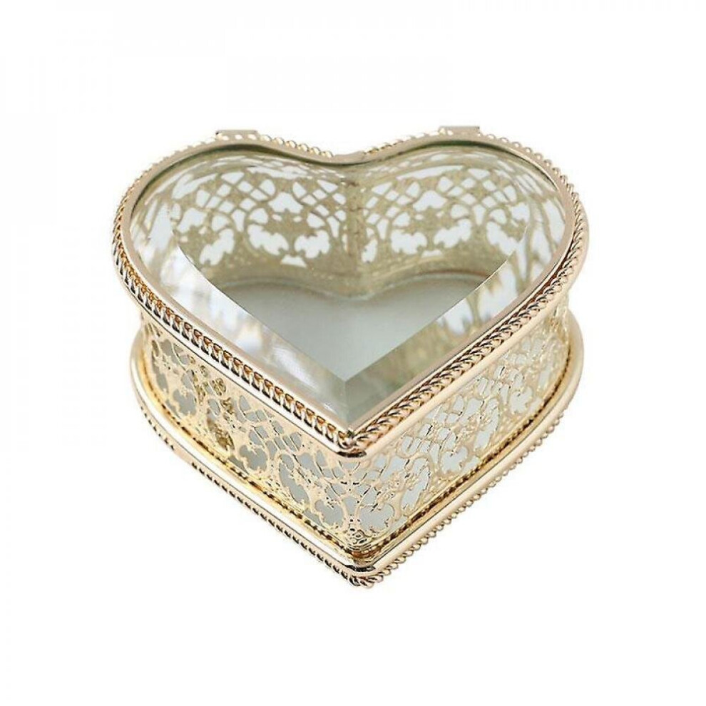 Diamond Heart Shape Glass Jewelry Storage Box Ring Necklace Dressing Table Makeup Container