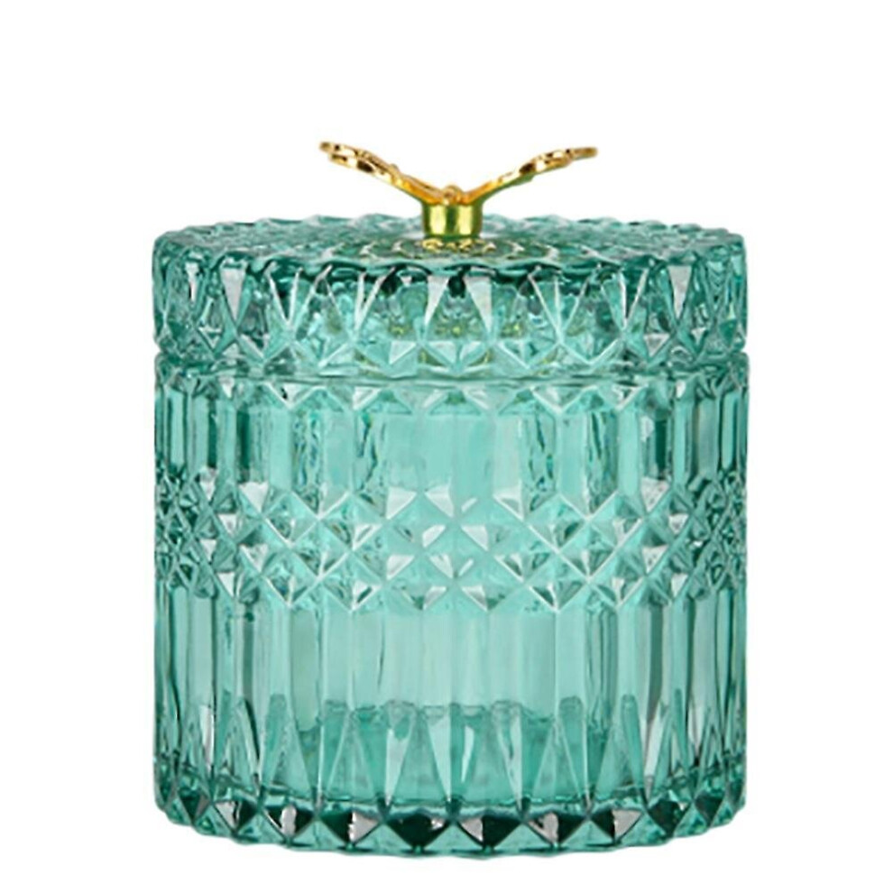 FUJUN Butterfly Glass Jewelry Box with lid, Household Cotton Swab Box, Office Pen Holder Storage Jar, Flower Arrangement Vase, Scented Candle Jar, Gift (10.5x10.5x12.5cm, green)