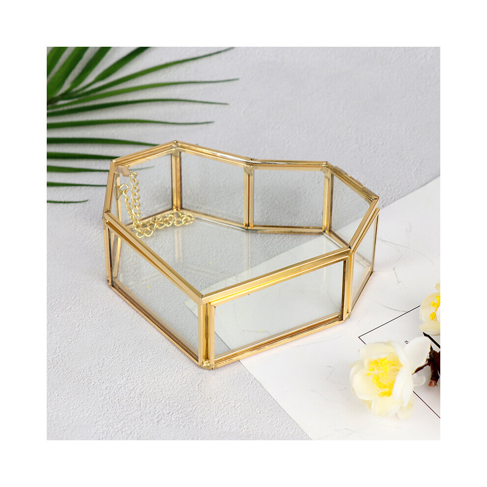 MagiDeal Golden Vintage Octagon Glass Jewelry Box Display Case Organizer for Trinkets, Necklace, Ring, Diamond, Flower 6.7"x4"x8.3"