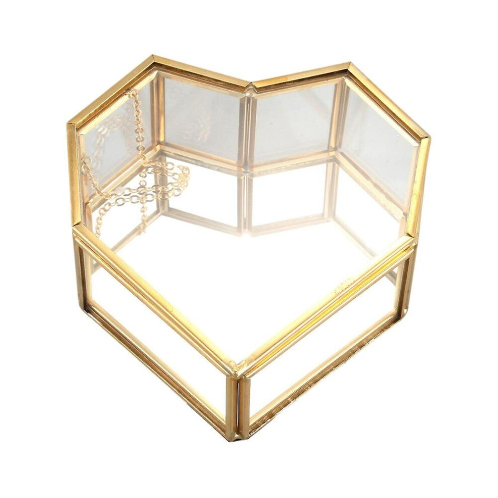 Flip Love Heart Shaped Geometric Glass Jewelry Box Glass Ring Box Jewelry