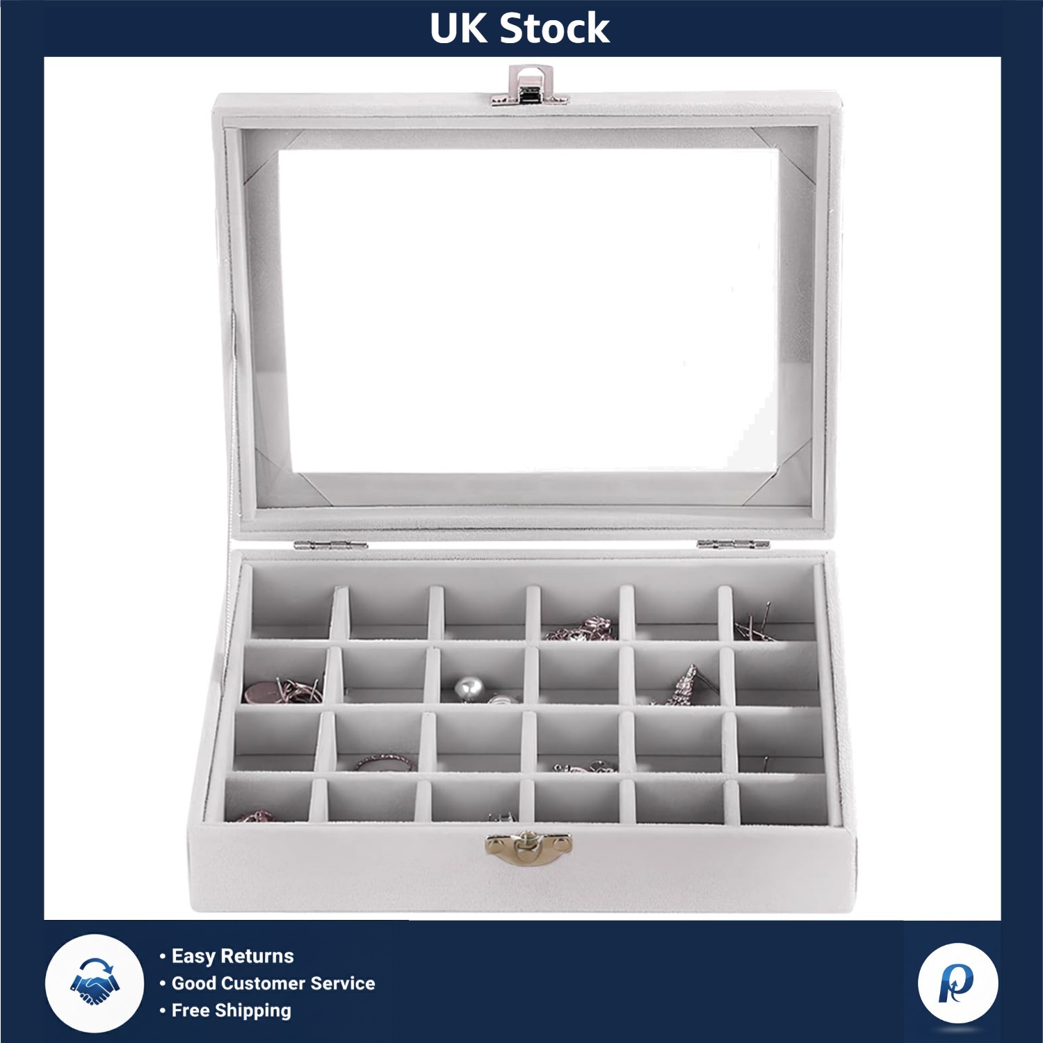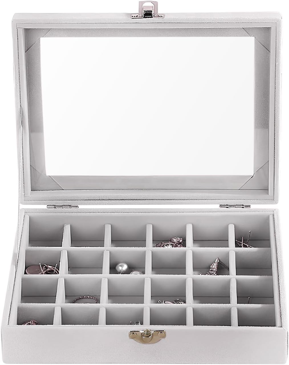 LANTWOO 24 Grids Velvet Glass Ring Earrings Jewelry Box Earrings Organiser Storage Holder Display Case