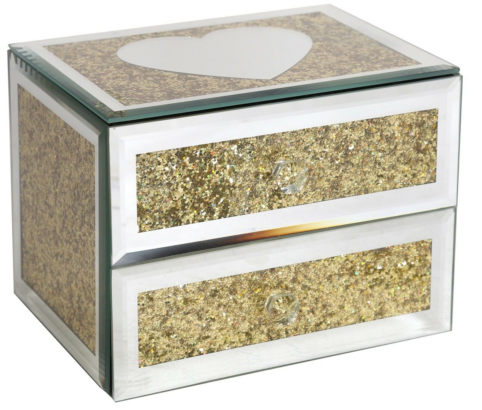 Jewllery Box Gold Heart Glass Mirrored Jewelry Box Black Velvet Mirrored 2 Draws