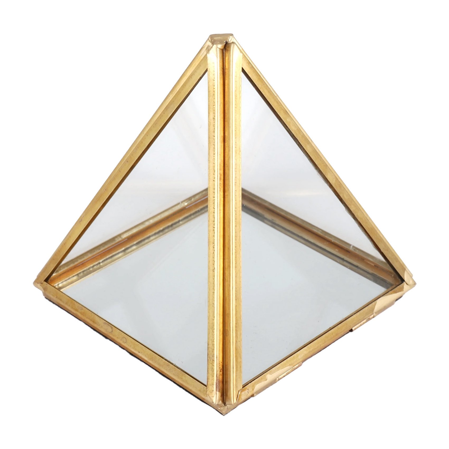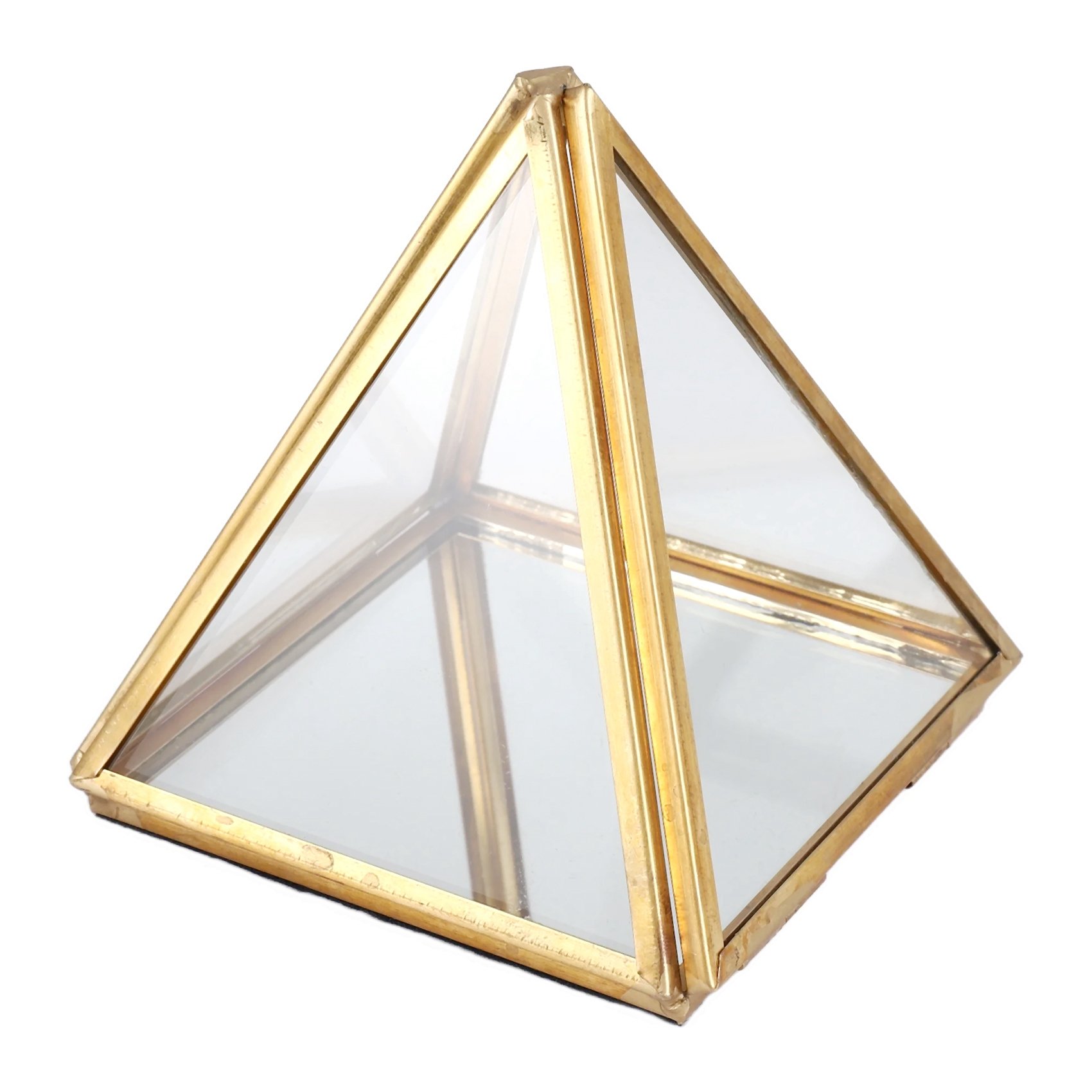 Glass Jewelry Box Golden Geometric Decorative Box Geometric Glass Pyramid9614
