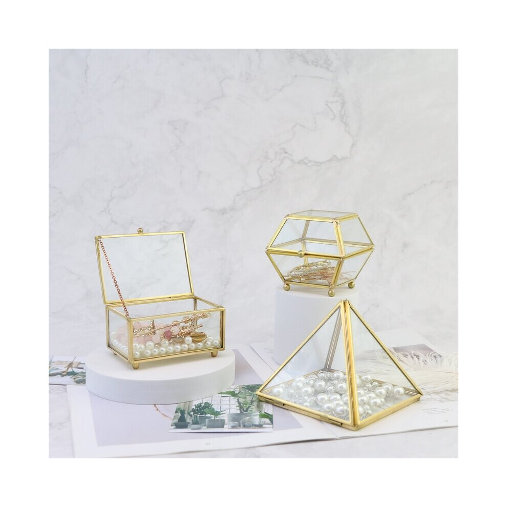 Jkjlorey Glass Jewelry Box Golden Geometric Decorative Box Geometric Glass Pyramid Ring Holders for Wedding Birthday Gift L