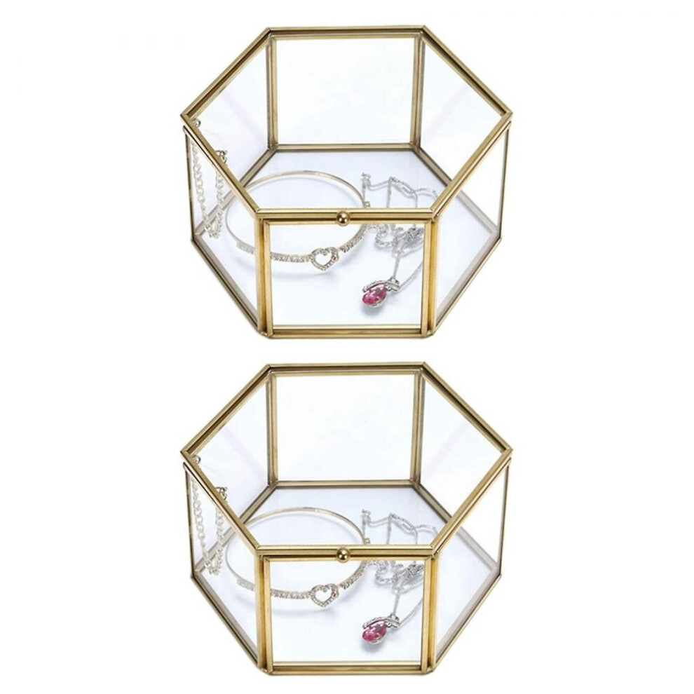 Glass Jewelry Box Golden Geometric Box For Wedding Birthday Gift