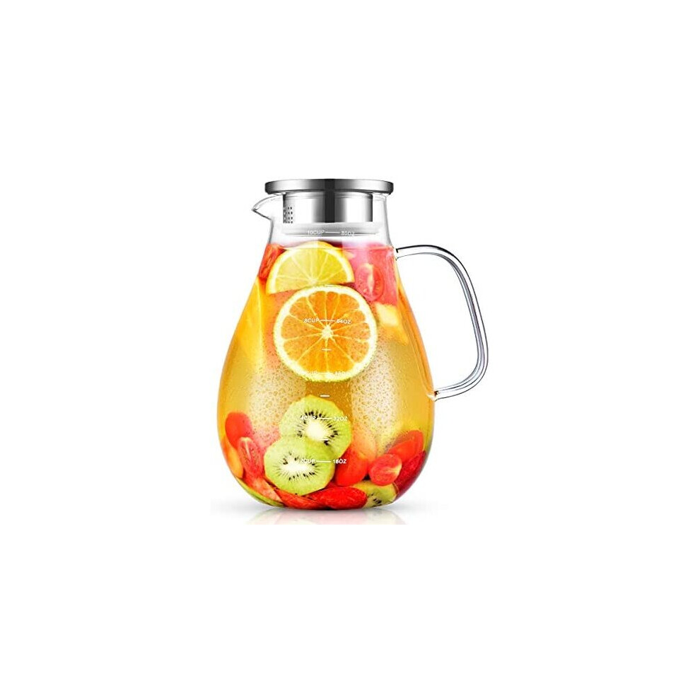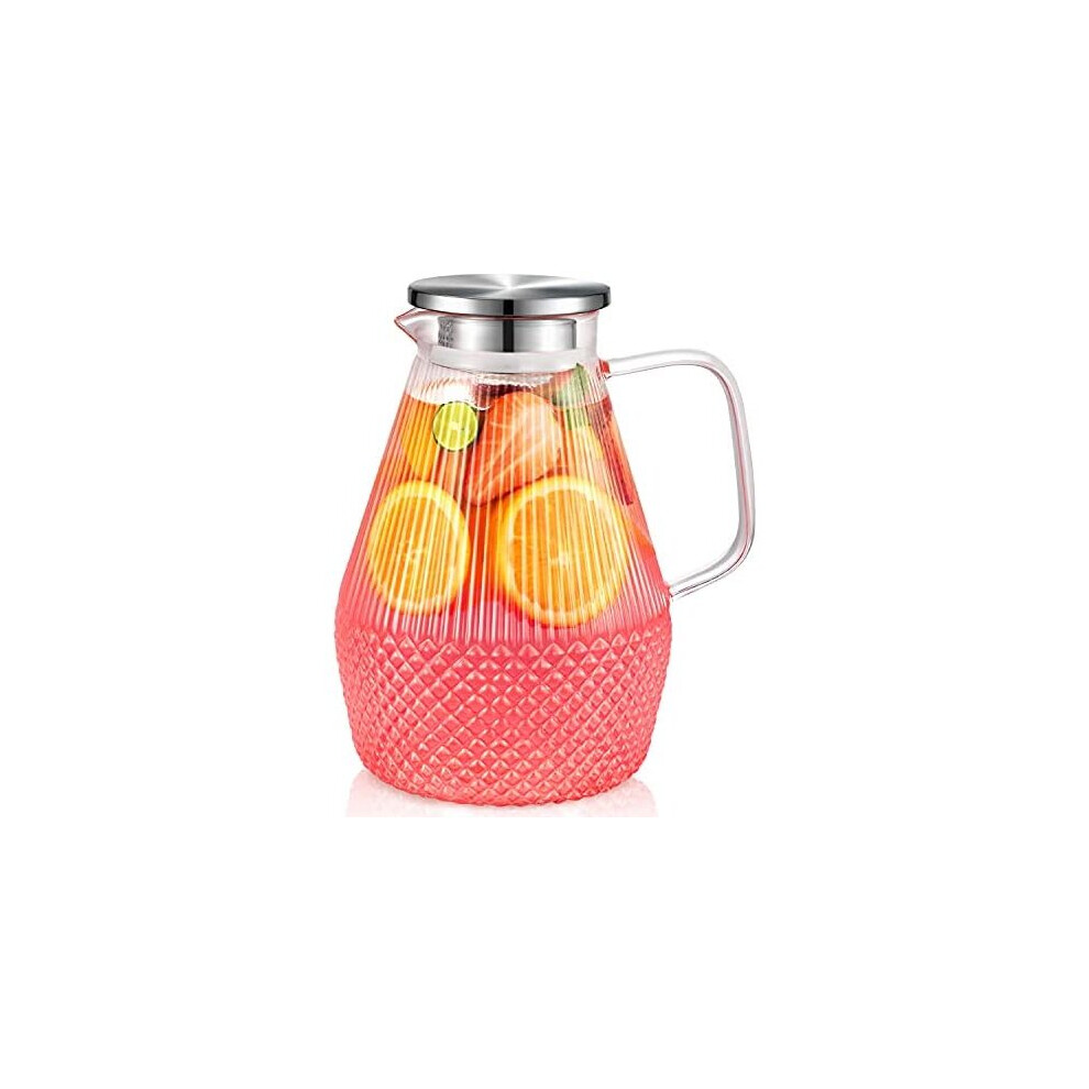 Water Jug, Glass Jug with Lid,Glass Pitcher,Glass Carafe with Lid,Borosilicate Glass Water Jug,iced Tea Pitcher,51