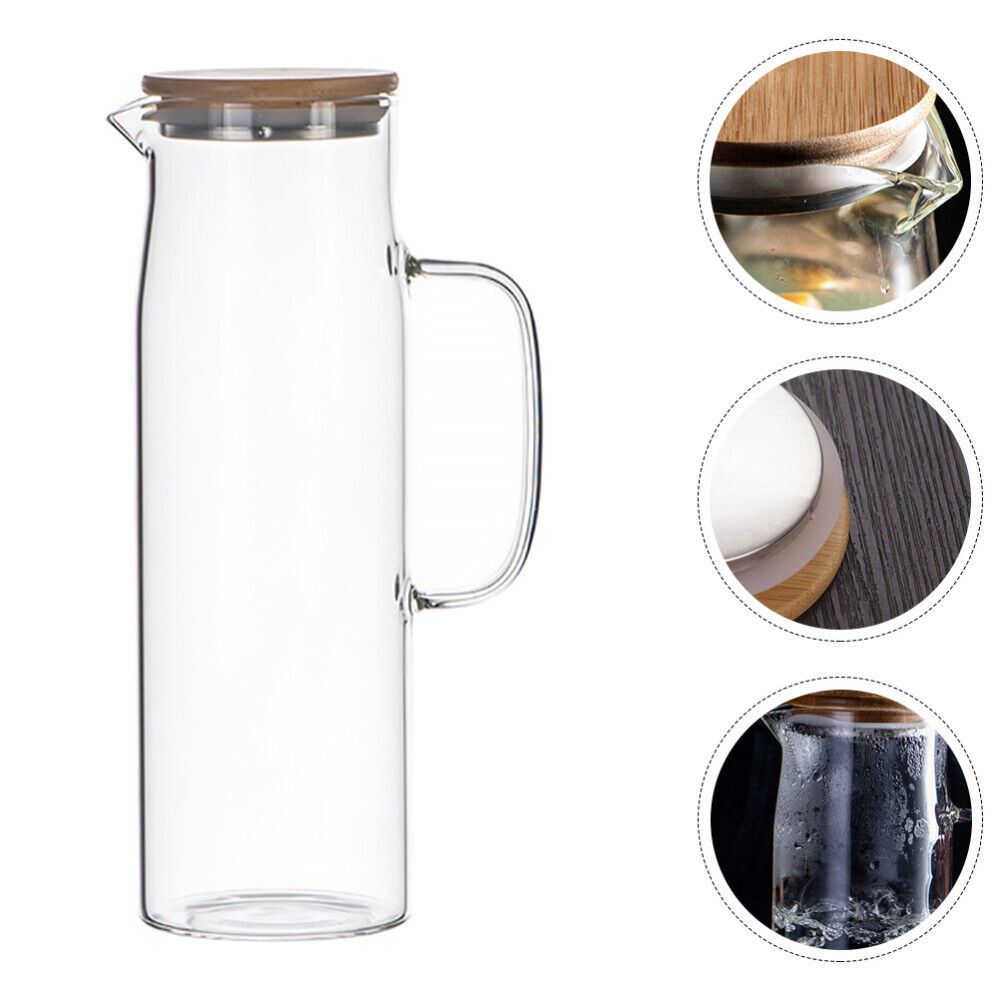 Water Jug, Glass Pitcherwith Bamboo Lid, 1800ml Large Capacity Hot Cold Water Pitcher Carafe Jug with Handle, Transparent Glass Water Pit Fridge Jug for Water, Tea, Juice, Sangria, Cocktail, Cold Brew
