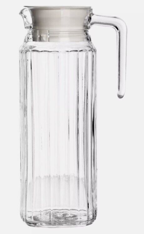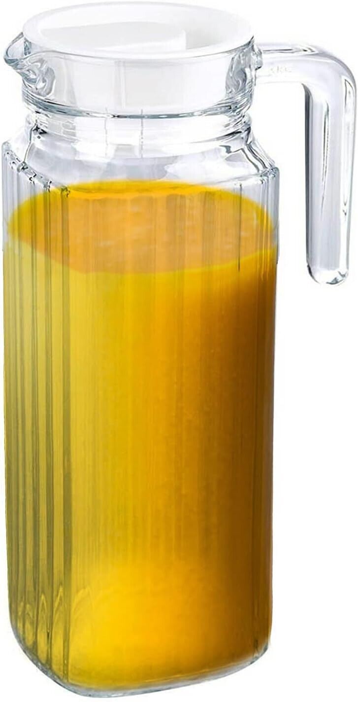 Glass Jug 1L Fridge Jug Ribbed Pitcher with Lid Water Juice Lemonade Drinkware