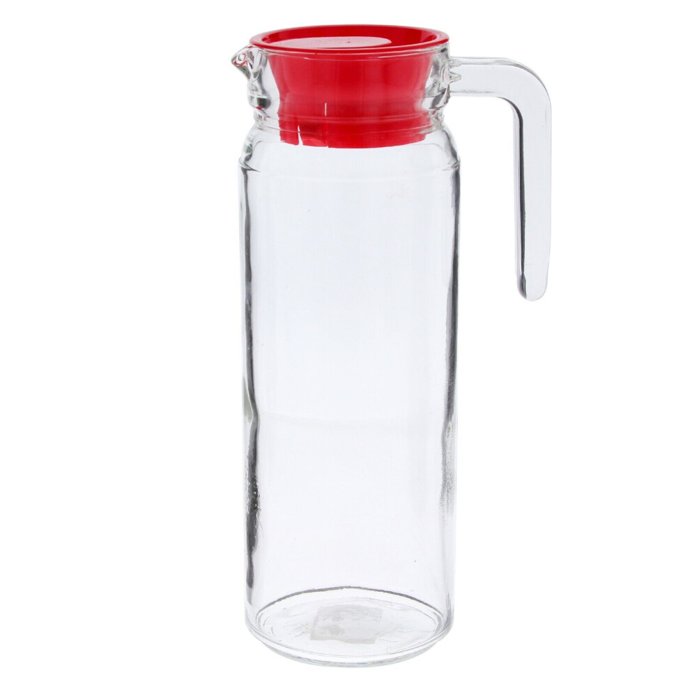(Red) Glass Jug Serving Pitcher with Lid Fridge Milk Water Juice Cocktails Drink 950ml