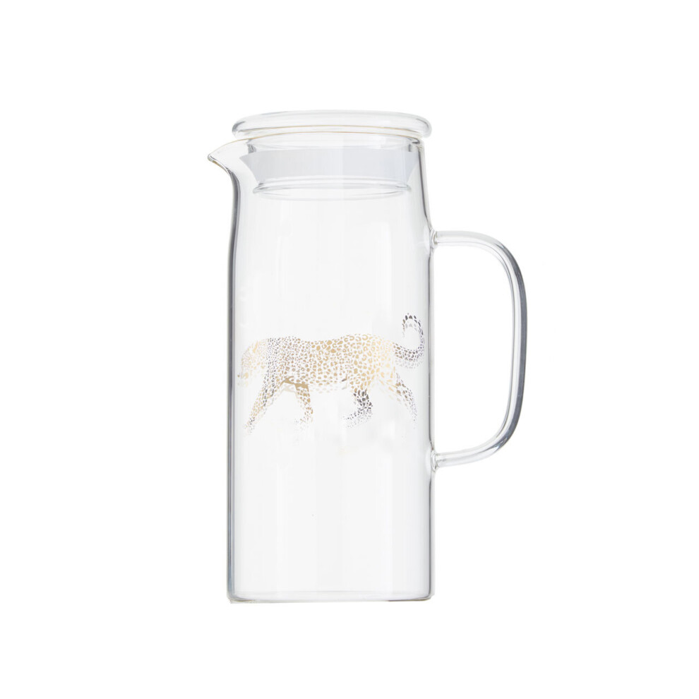 Elegant Leopard Jug, Spacious Glass Jug With Lid For Fridge, Ergonomic Water Jug With Lid For Bedroom