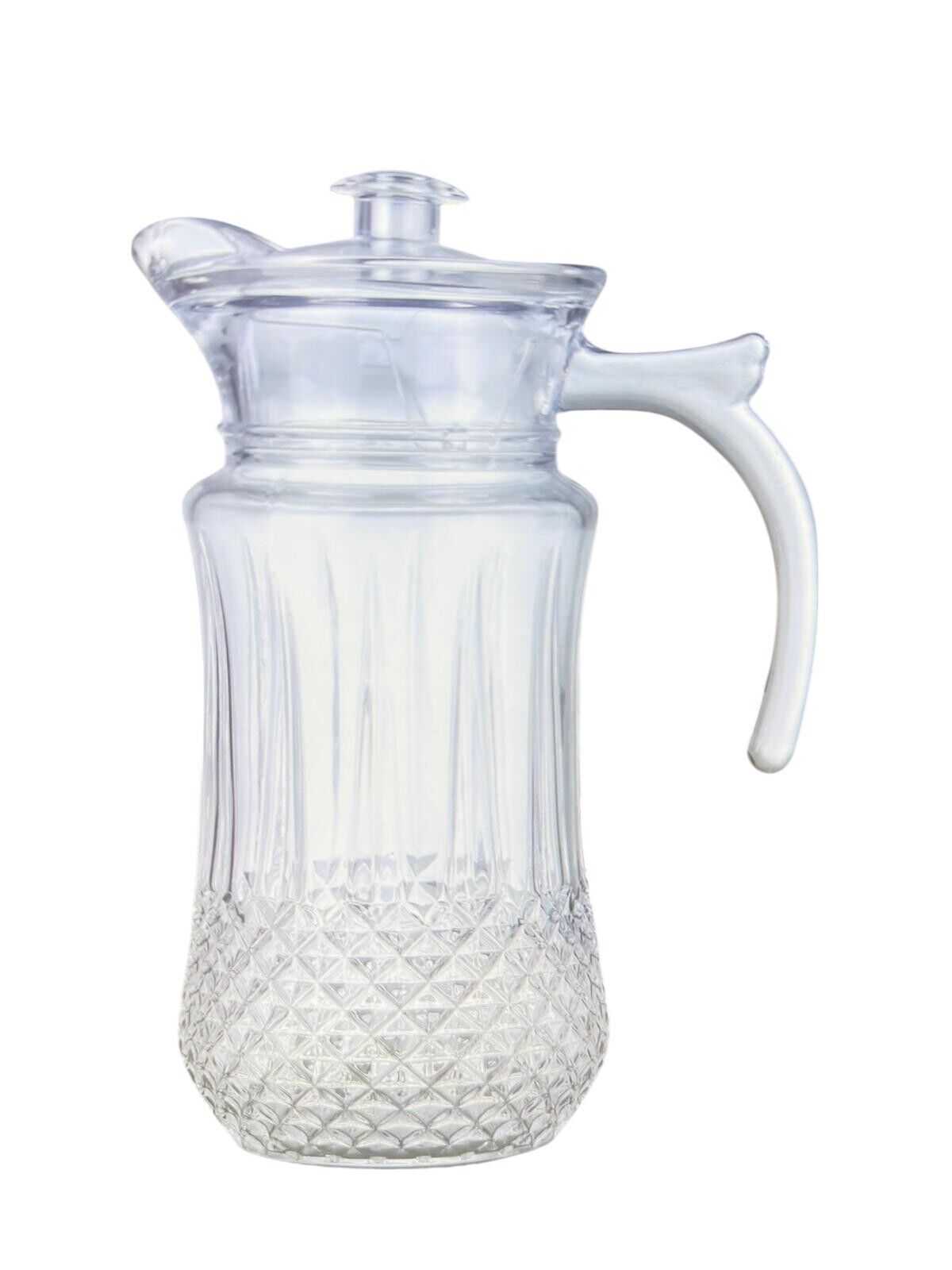 Glass Fridge Jug 1L Diamond Cut Pitcher with Lid Water Juice Lemonade Drinkware