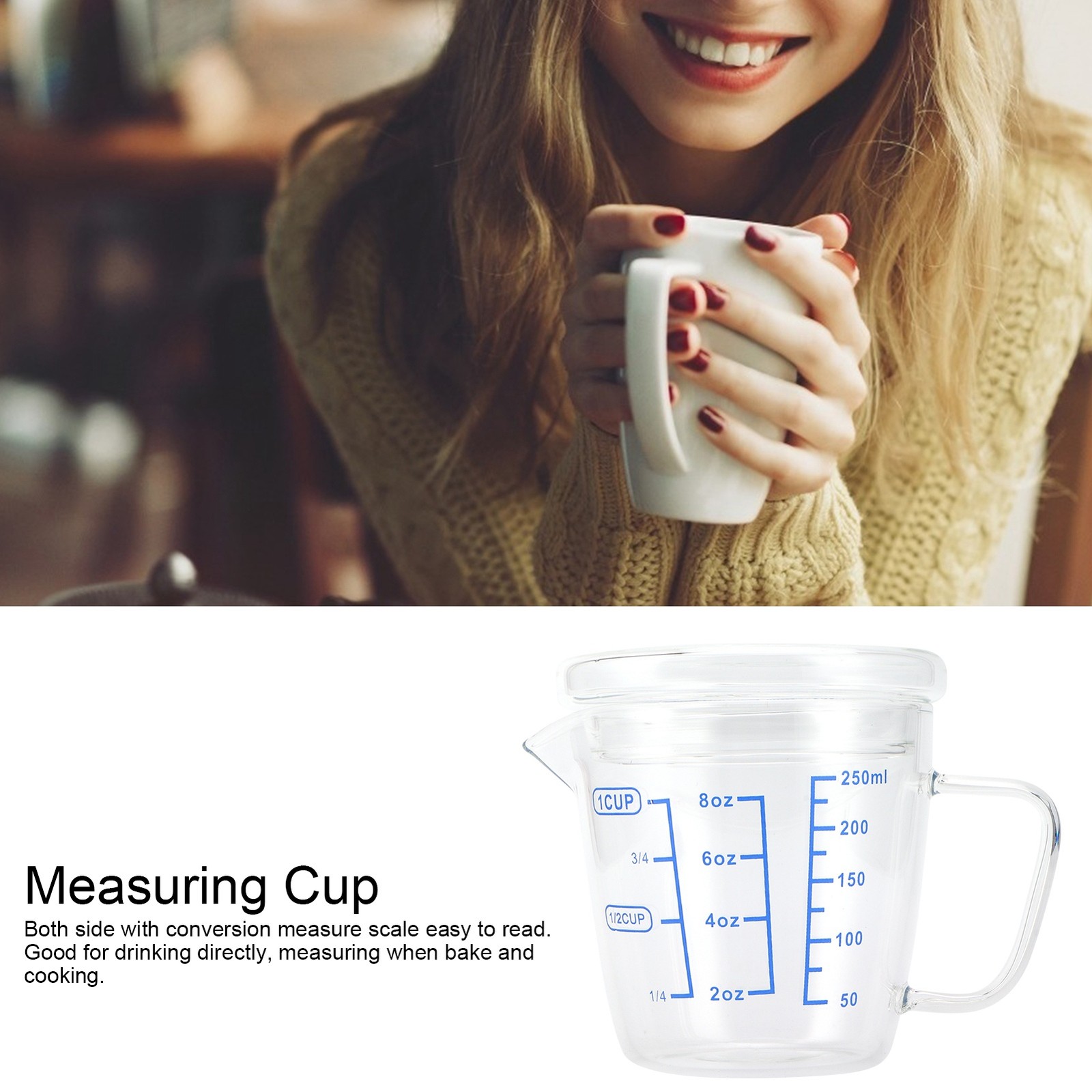 (250ml)Heat Resisting Glass Measuring Cup Milk Scale Measuring Jug With Lid TU