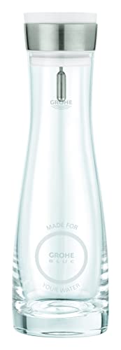 GROHE Blue Crystal Glass Carafe with Lid Set (Stainless Steel Lid with Tilt Lock, BPA-Free Water Jug 1l, Plastic Lid for Closing, Dish Washer Safe, with Integrated Sieve to Hold Back), 40405001