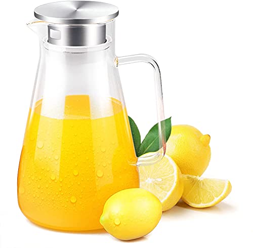 Carafe Glass, Uten 1500ml 53oz Pitcher Jug Lead-Free Borosilicate Glass Kettle with Crystal Handle and Stainless Steel Lid Cover for Milk, Red Wine, Cold Water, Fruit Juice, Hot Coffee, Ice Drinks