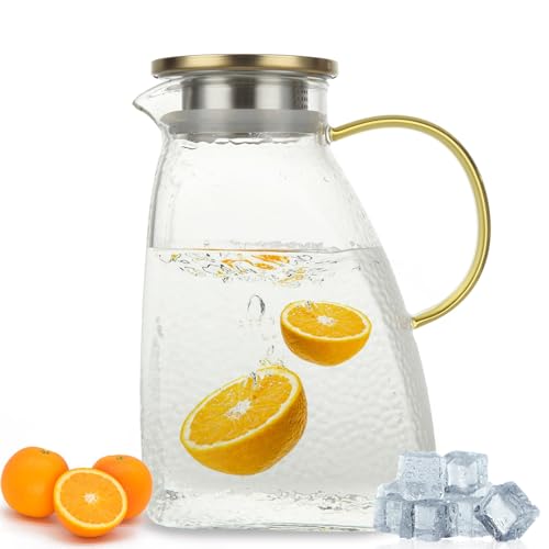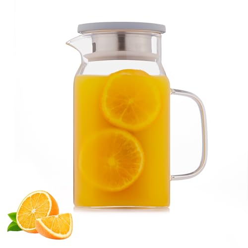 2.0 Litre Glass Jug with Lid, Water Carafe Jug for Hot/Cold Water, Iced Tea and