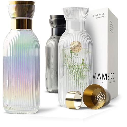 MAMEIDO Water Carafe 1 l, Glass Carafe with Lid & Sieve, Hand-Blown Water jug with Noble Look for Special Occasions, carafes to give as a Gift (Smoke Gold)