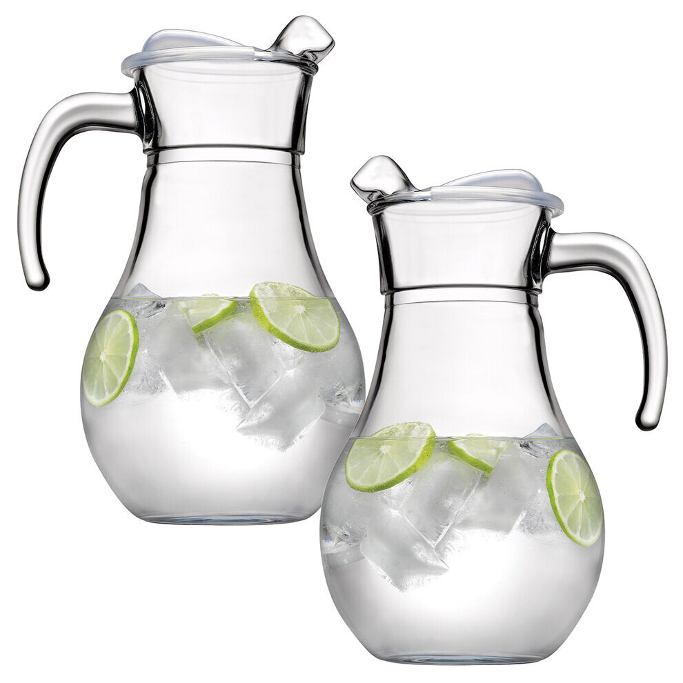 (2) 1.8L Pasabahce Glass Jug with Lid for Water, Juice, Cocktails