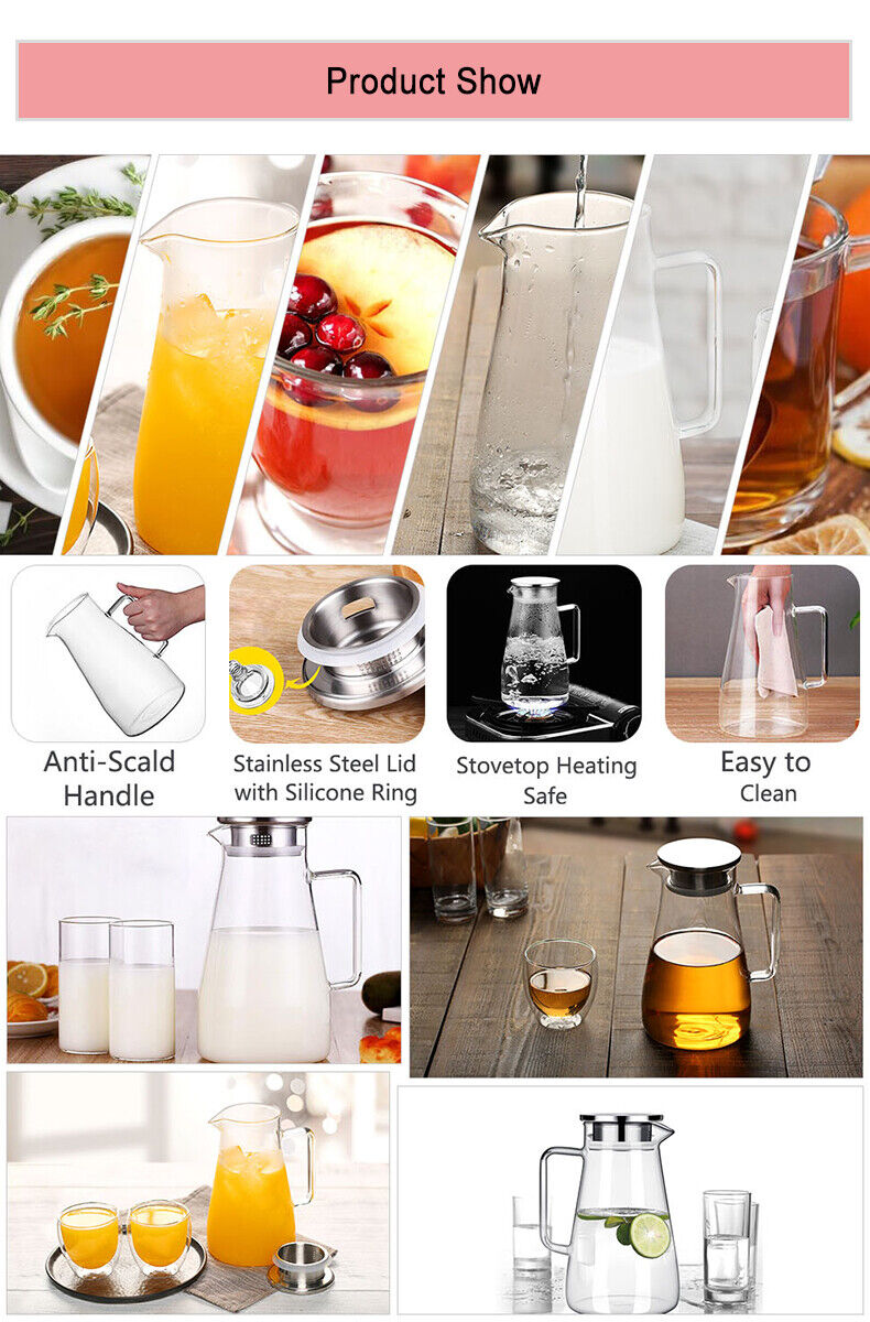1.5L Glass Pitcher Water Jug Cold & Hot Beverages with Stainless Steel Lid
