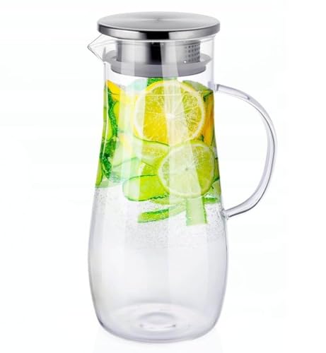 Alpina Glass Carafe with Lid 1.4 L Water Carafe with Stainless Steel Filter - Carafe Glass for Cold and Hot Drinks - Elegant Water Jug