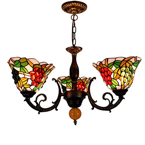 KJHFD Ceiling Fixture Style Stained Glass Idyllic Sunflower Lamp Shades 3 Arms with Inverted Pendant