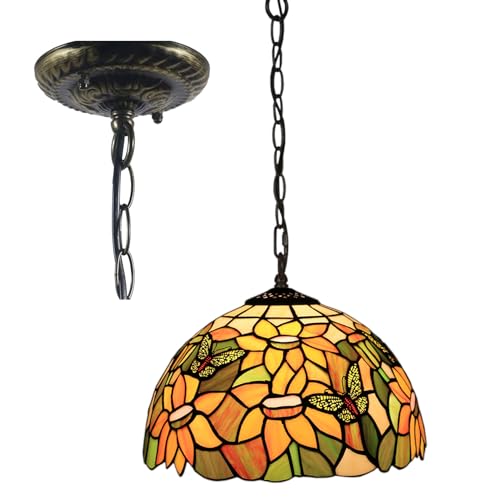 XANAYXWJ Pendant Light Fixture Rose Dragonfly Sunflower Stained Glass Lamp Shades Hanging Pendant Lamp Vintage Yellow Red Sea Blue Green Flower Home Decor Chandelier Wide 12",Sunflower