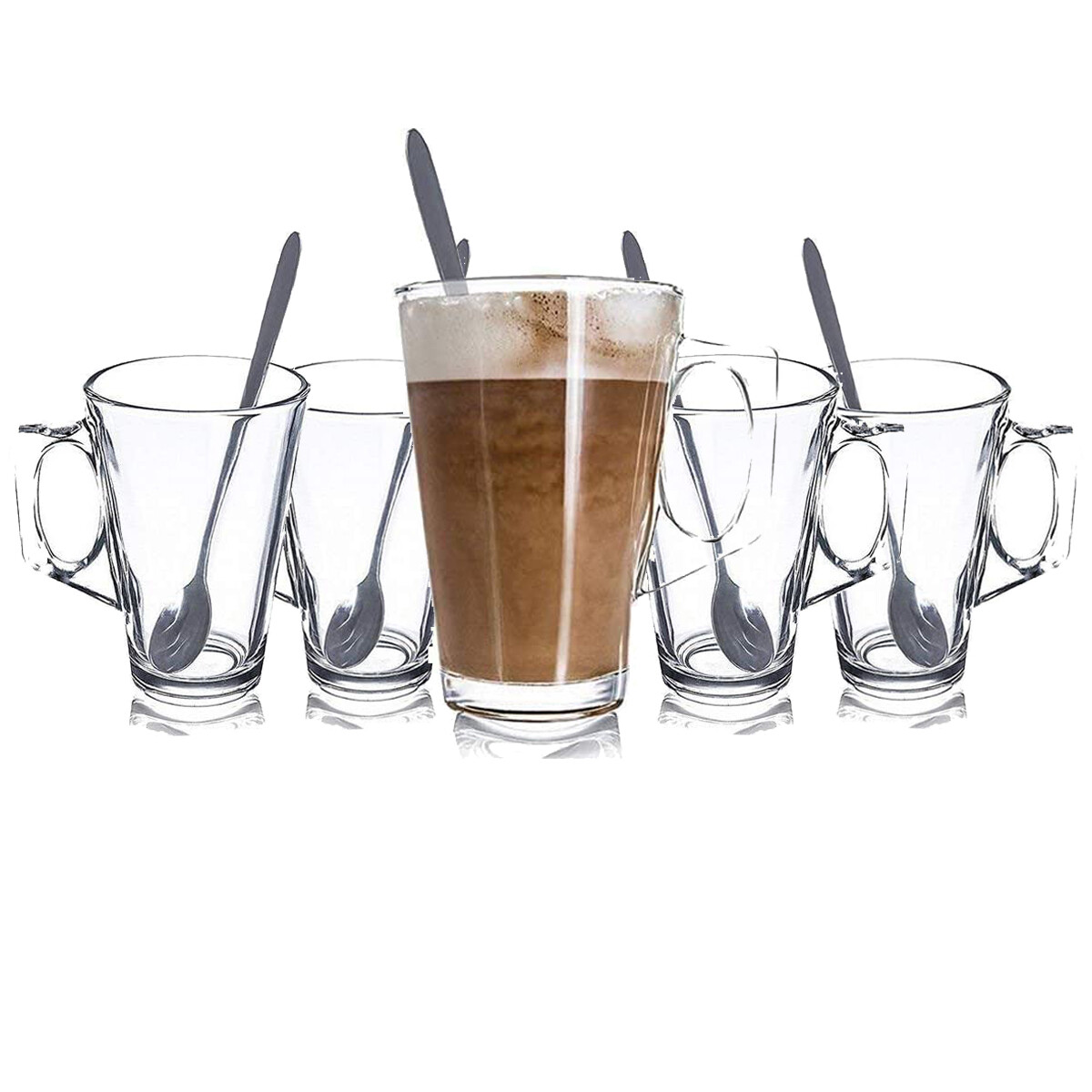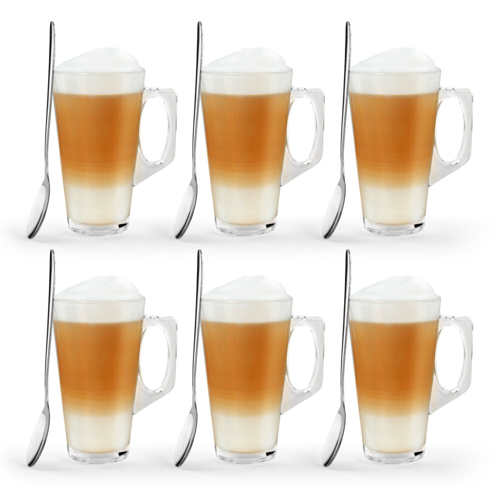 6 X Latte Coffee Glasses Cappuccino Tea Glass Cups Hot Drink Mugs W Long Spoons