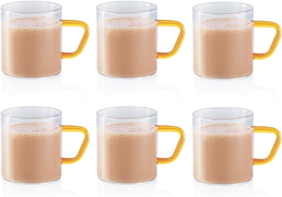 com-four® 6X Tea Glass - Drinking Glasses with Handle for Tea and Coffee - Ideal for hot Drinks, Cocoa, Latte Macchiato and Cappuccino (06 Pieces - 240ml)